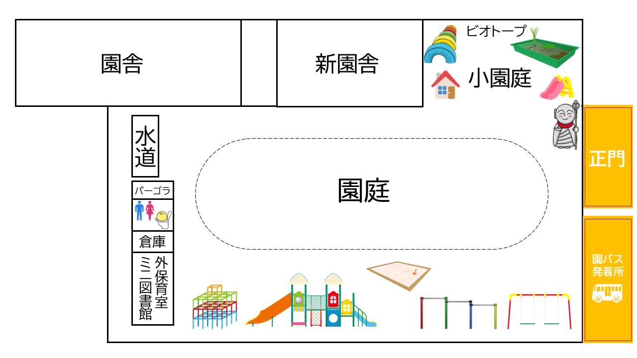・園庭に隣接する駐車場は、園バスの発着所です。園児の安全を最優先に確保するため、原則として一般のご利用をお控えください。